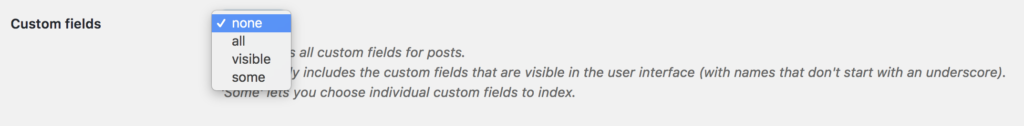 If there are just a few specific custom fields you want to index, you can choose to index only some custom fields, which will open up an input field where you can list the custom fields you want to include.